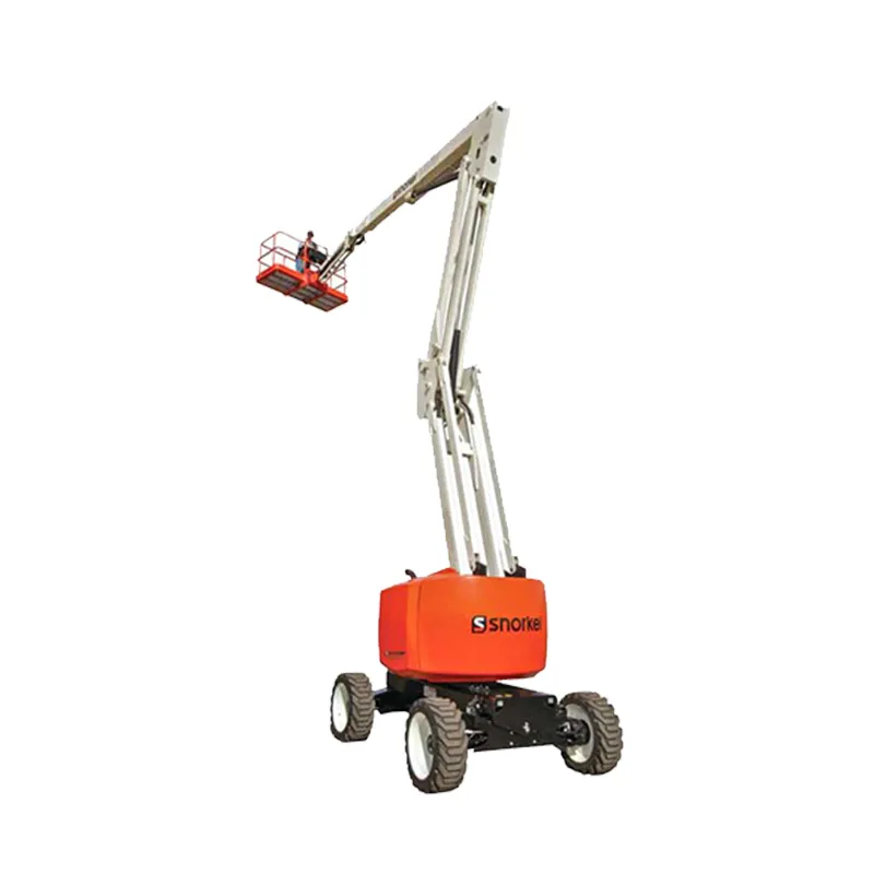 Brazo Articulado Diesel Snorkel A62JRT hasta 18,8 m de plataforma, ofrece una envoltura de trabajo excelente con cero giro de cola. Longitud compacta. Todo terreno 4×4.